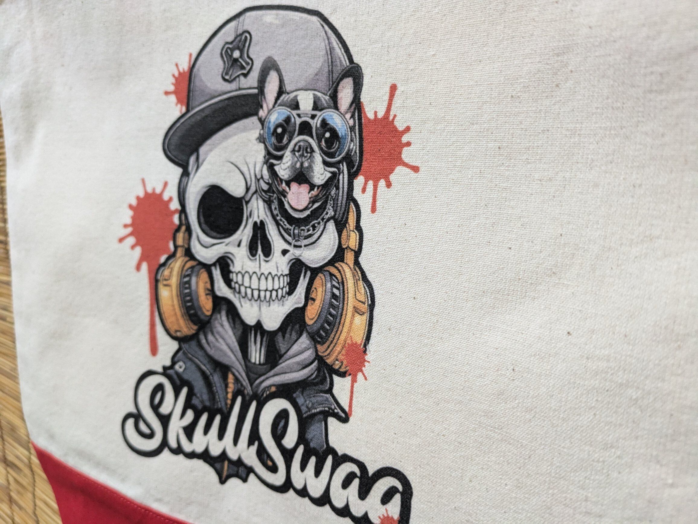 SKULLSWAGシリーズのフレンチブルドッグデザイントートバッグは、クールなスカルと愛らしいフレンチブルドッグを融合させた、まさに「カッコいい」アイテムです!